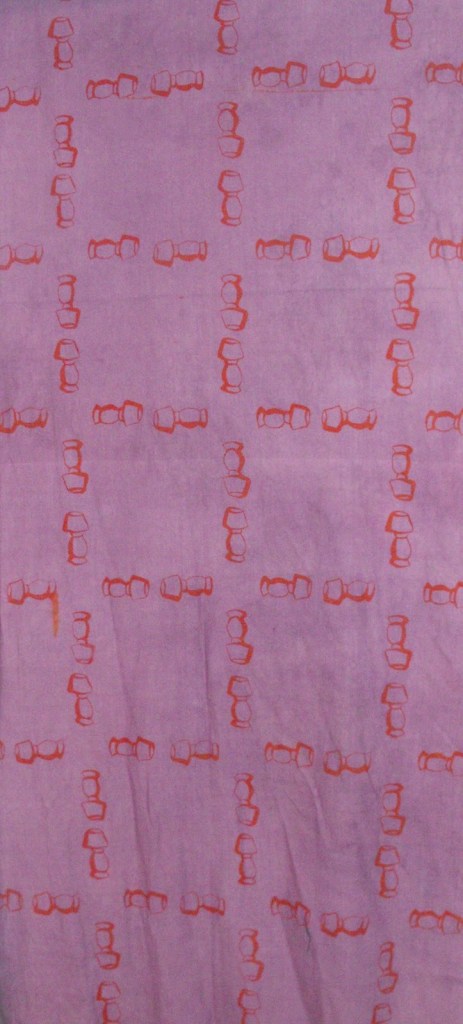 Naturally dyed fabric with screenprinted repeating pattern