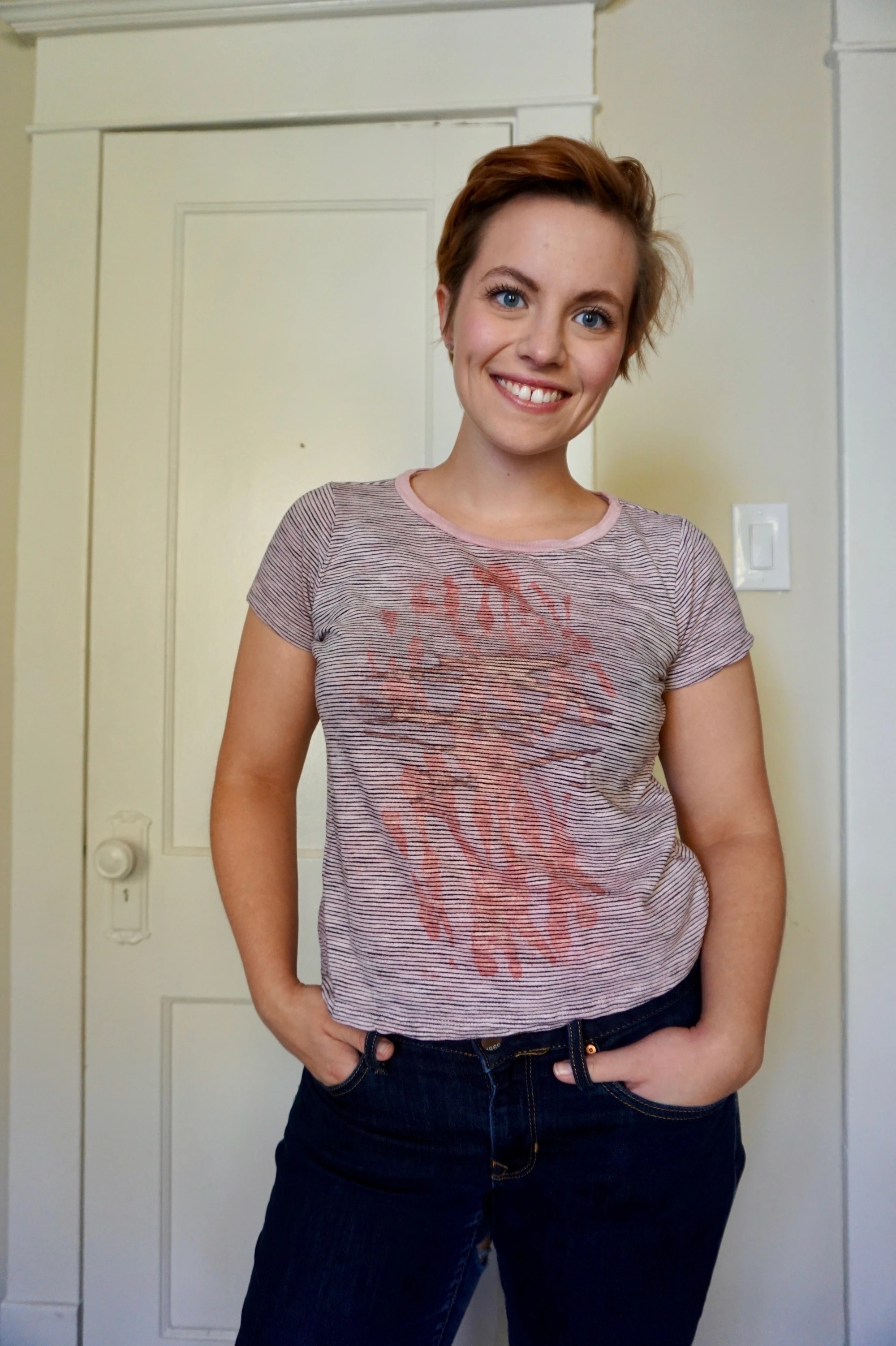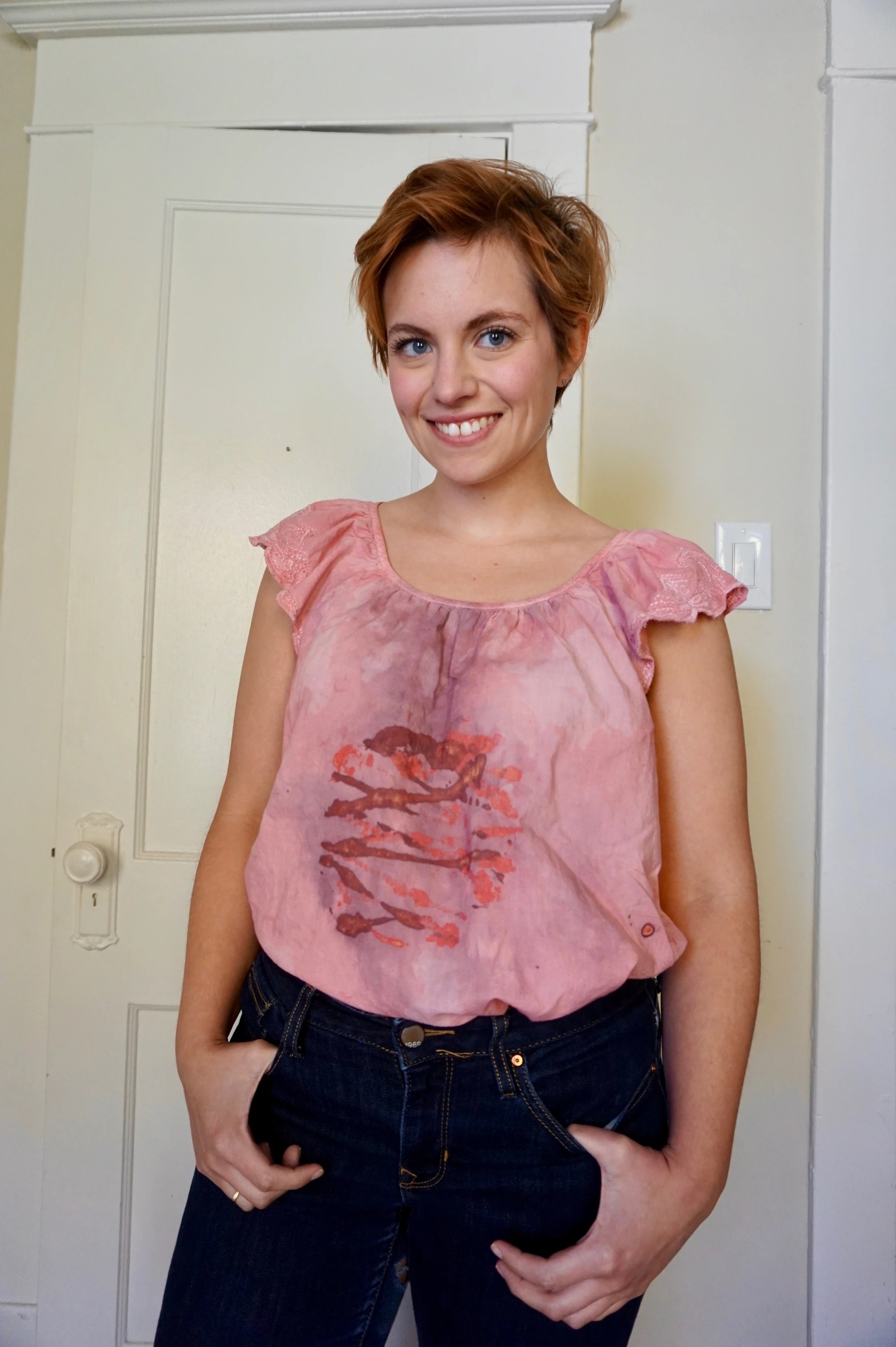 Mordant Printed ShirtRepurposed cotton shirts block printed with alum and iron, and natural dyed in madder2018