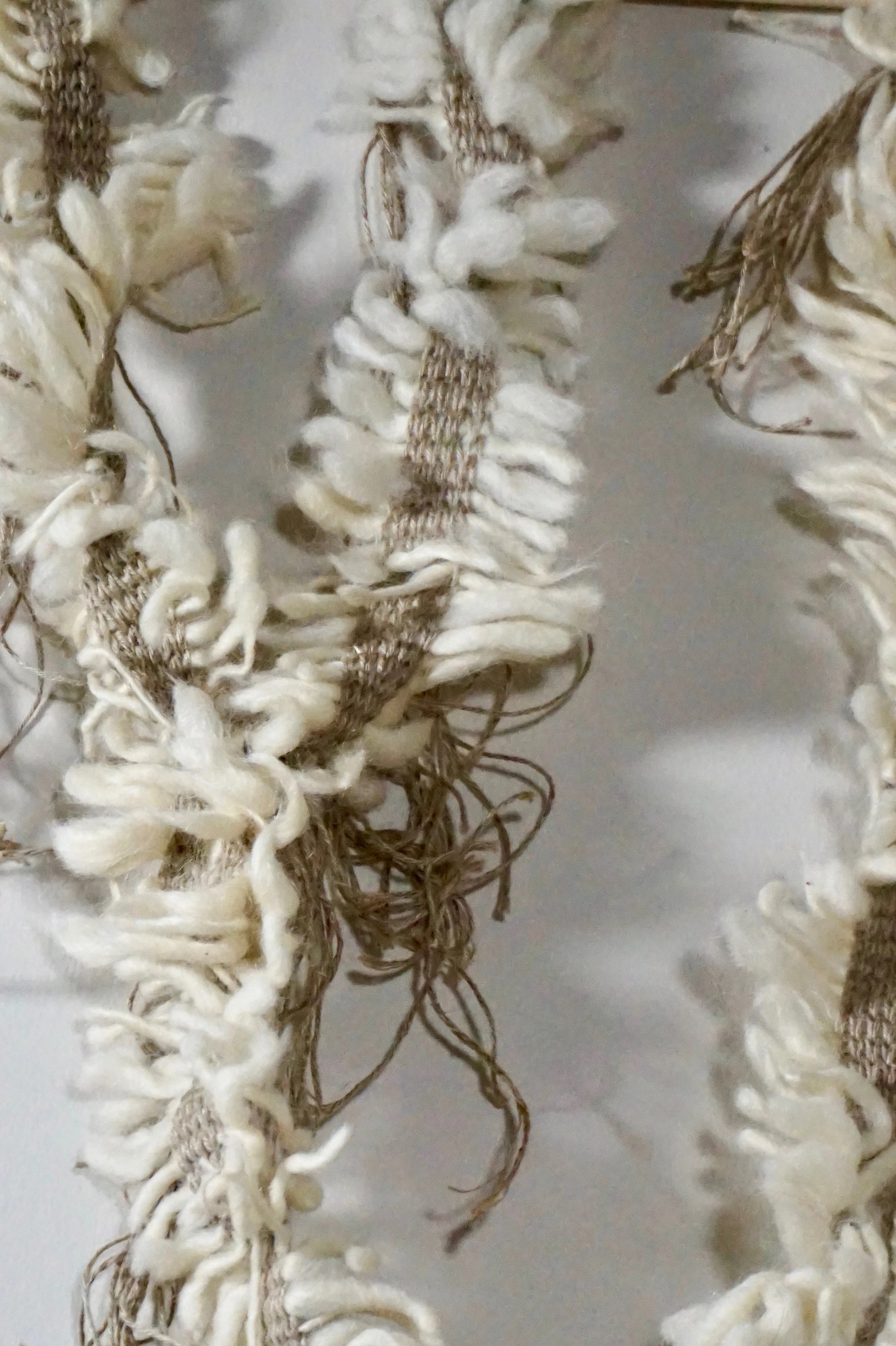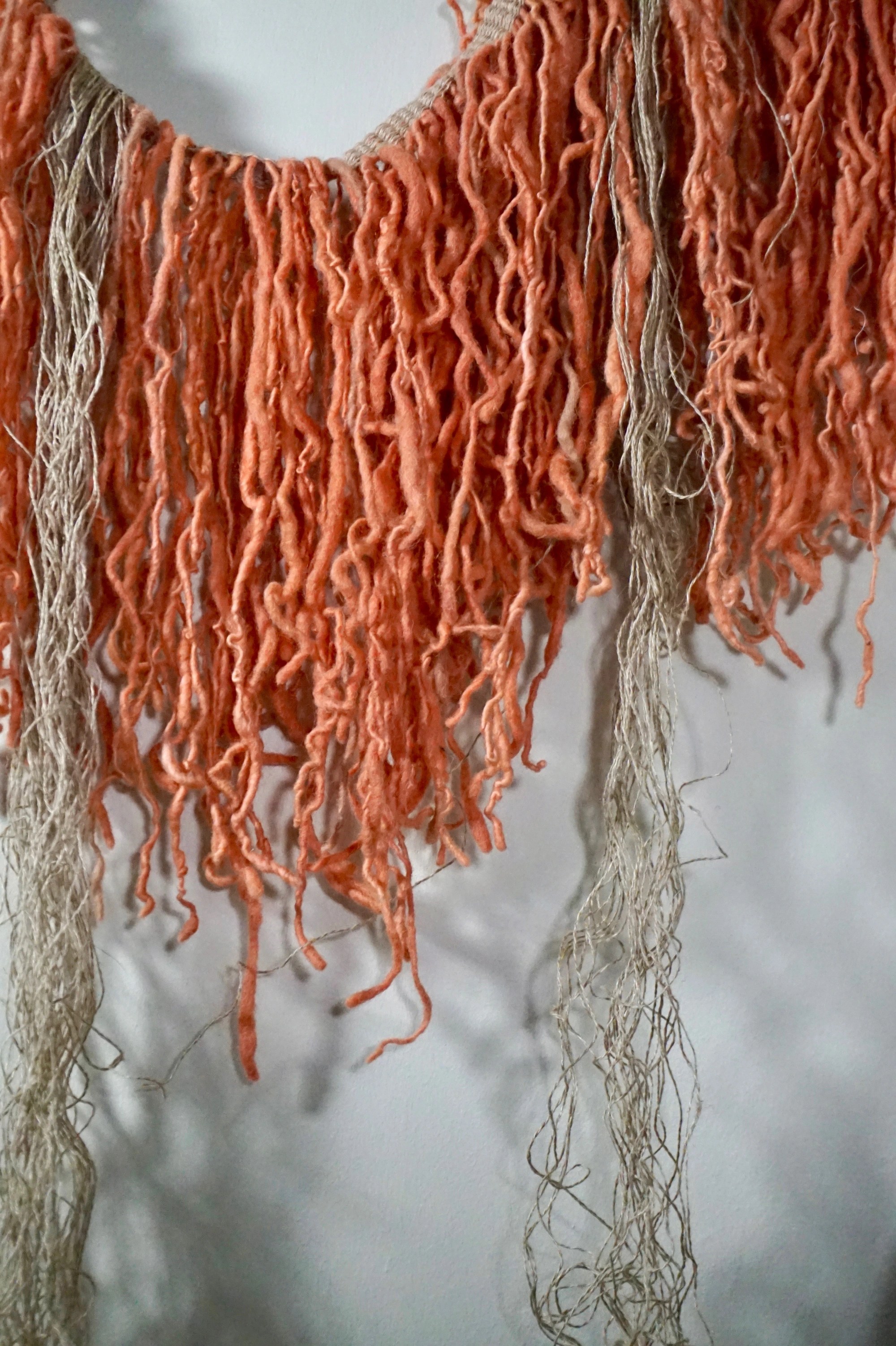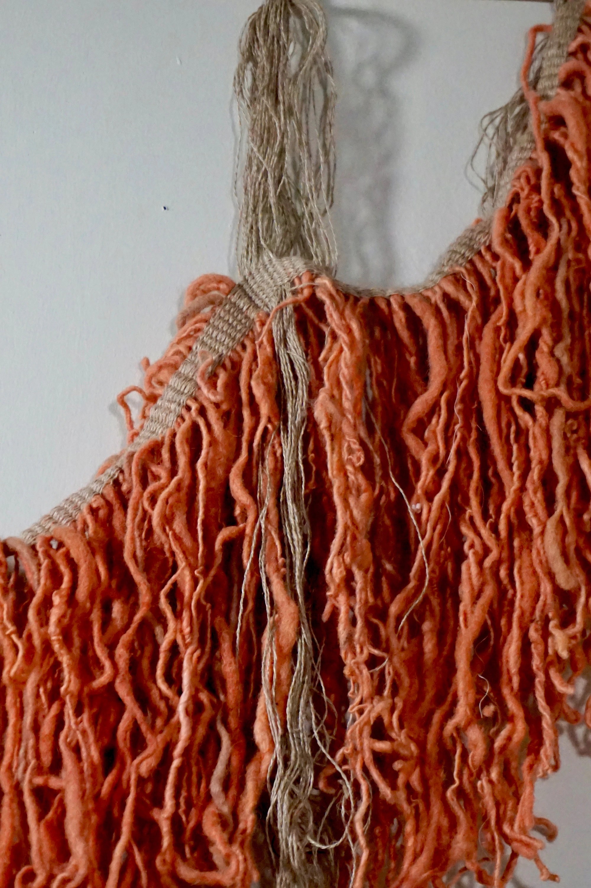 Handspun wool naturally dyed with marigolds and cochineal, linen