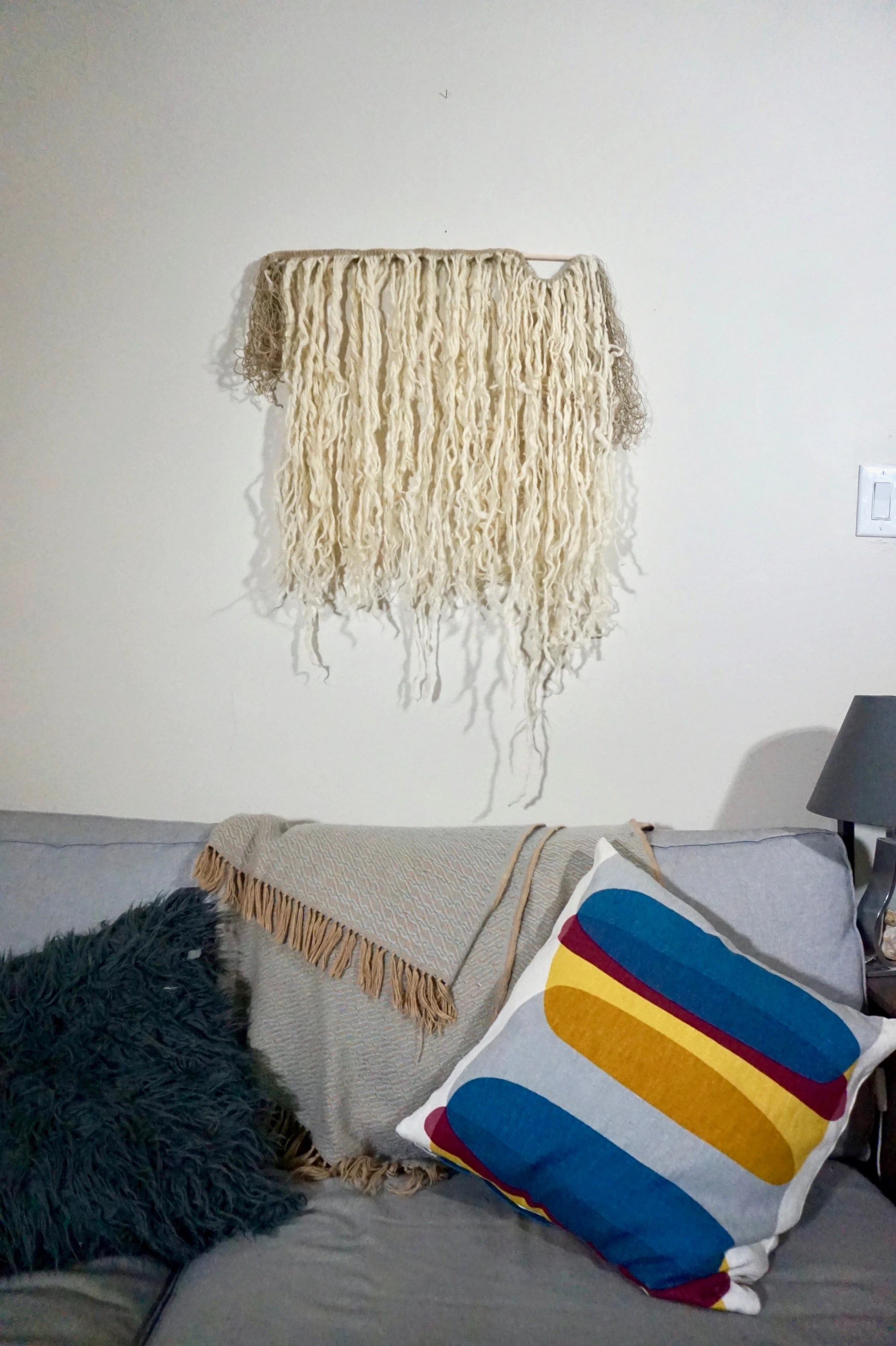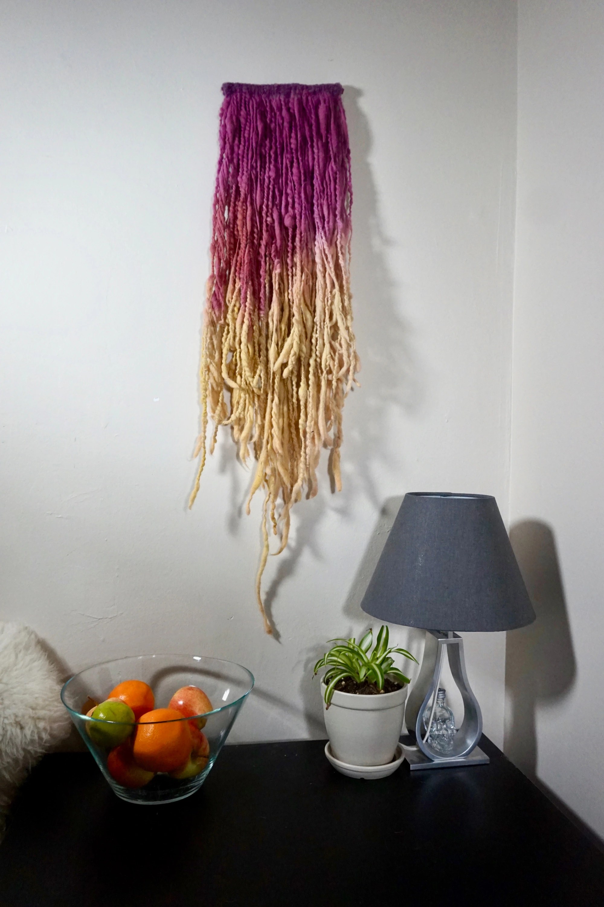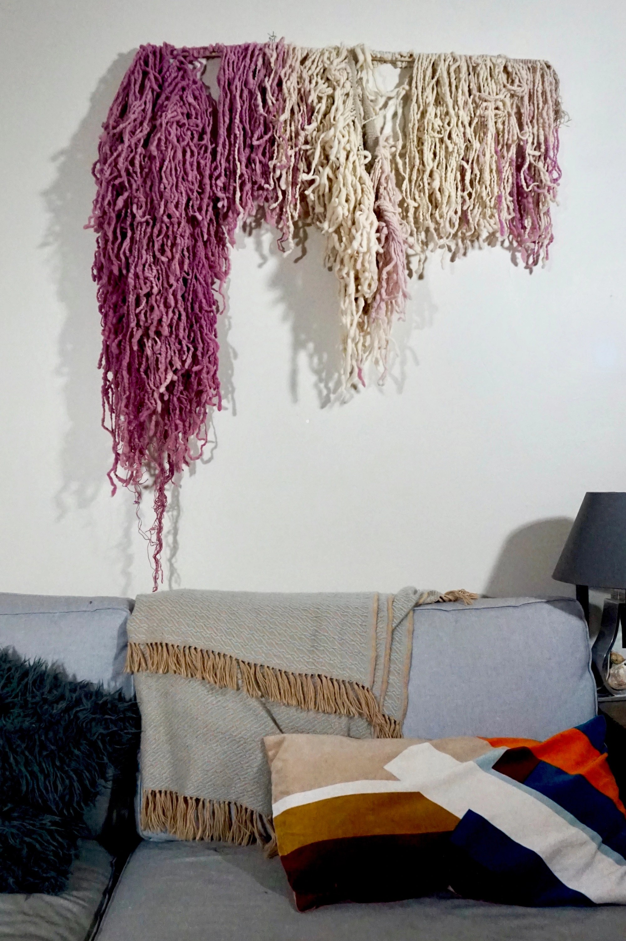 Handspun wool naturally dyed with marigolds and cochineal, linen