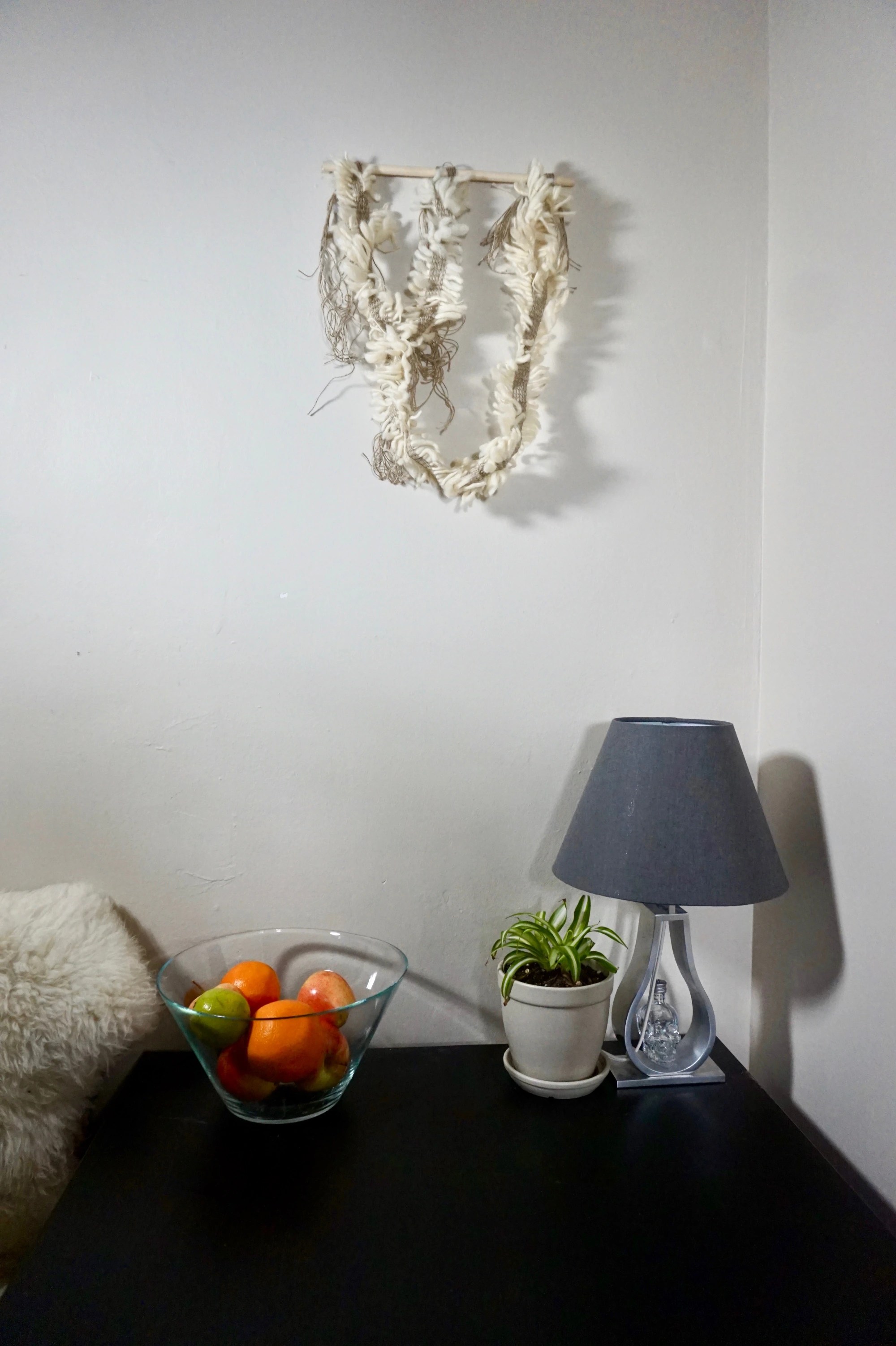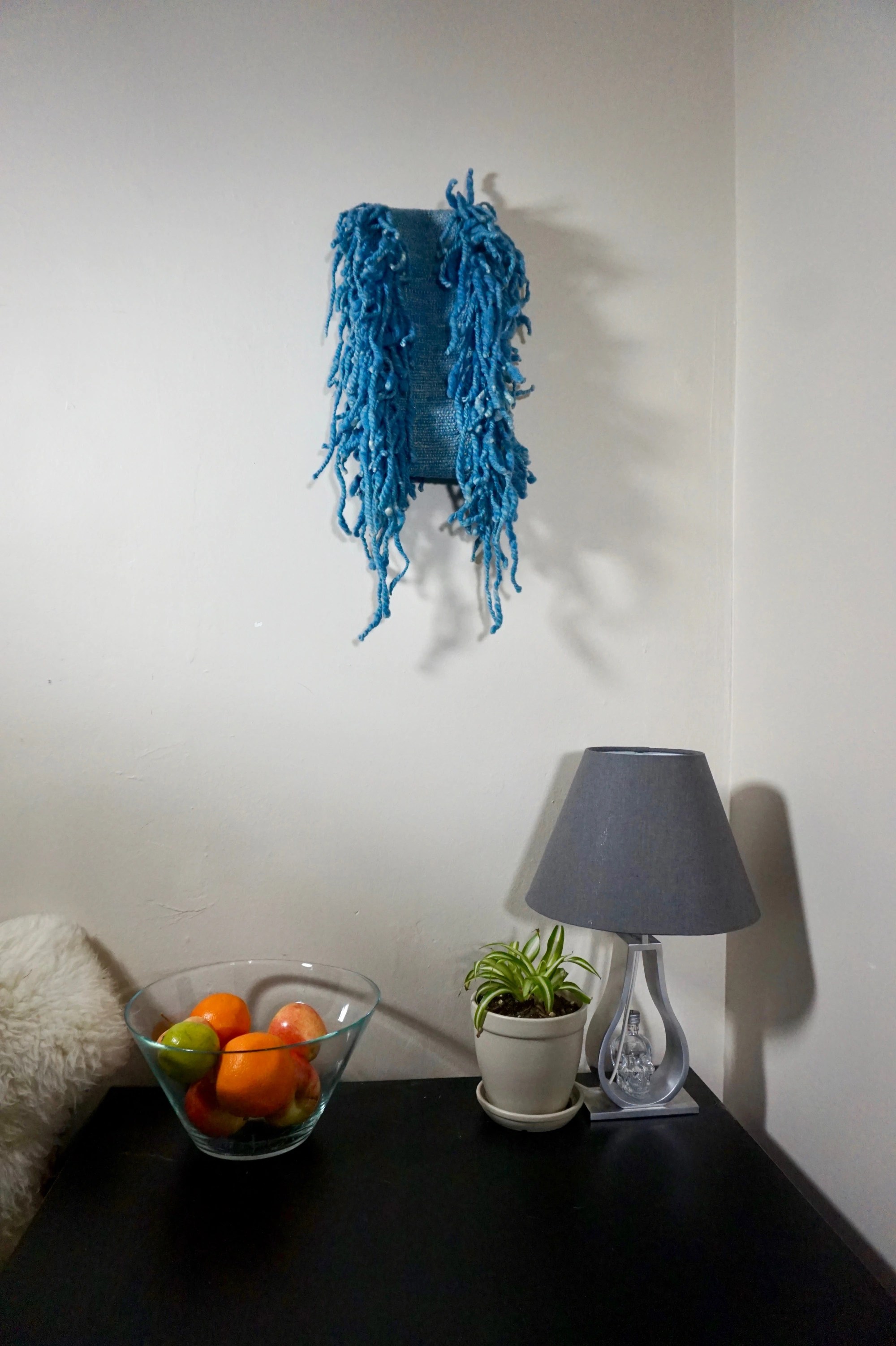Handspun wool naturally dyed with onion skins and indigo, linen