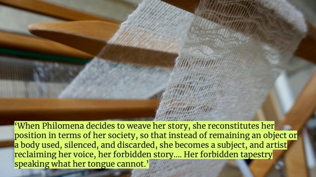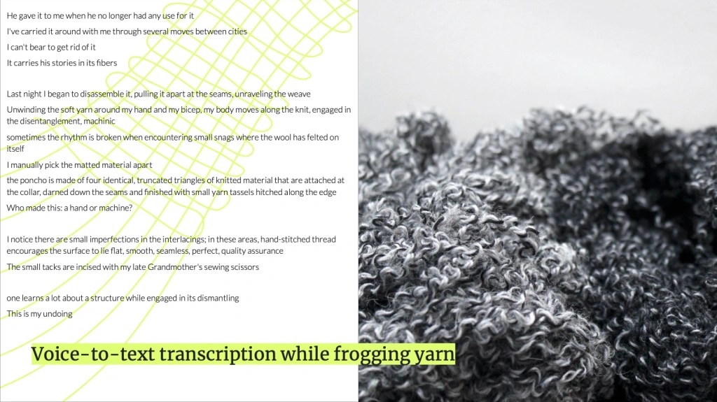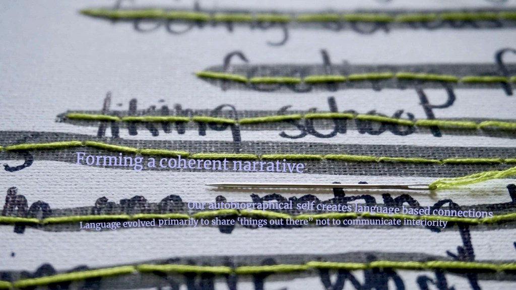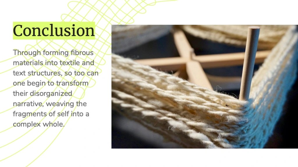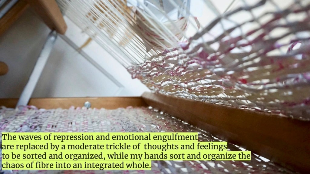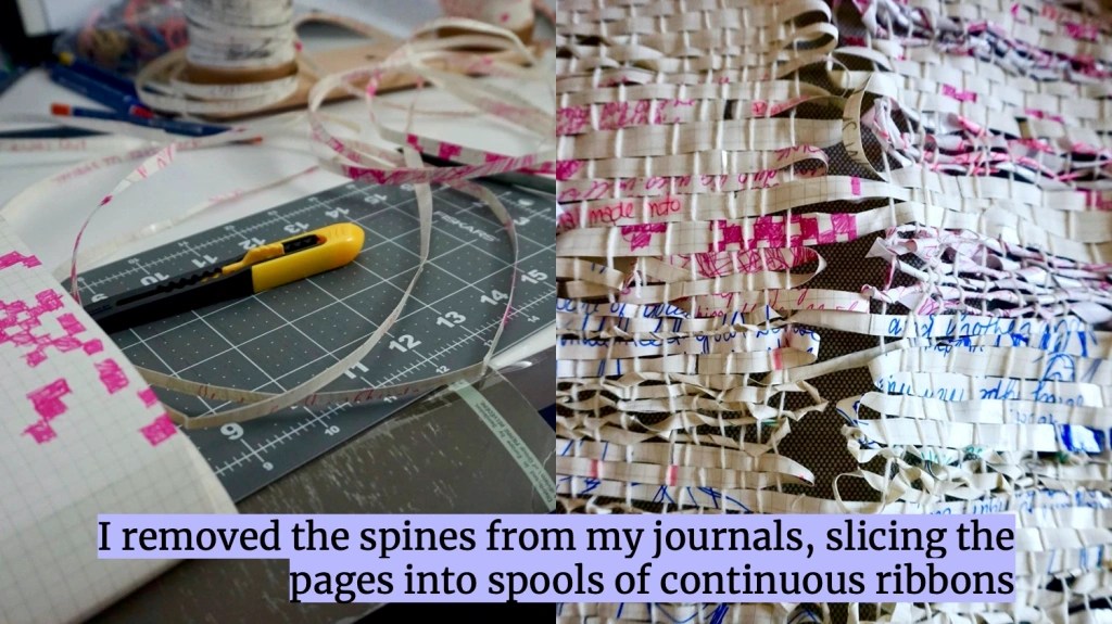 “Katrina Craig and Jolee Smith will give a joint presentation on their independent creative practices, which both deal with hybrid text and textile methodologies in relation to trauma. In her studio practice, Katrina repurposes written text as the material for her textiles work, whereas Jolee has been drawing on the techniques of textile practices as an approach to writing text. The movement between text and textile will be a theme throughout the presentation, as we interlace mediums and disciplines. We will position the aforementioned creative methodologies within trauma studies, literary theory, critical craft studies, and women’s histories. By drawing on these discourses and our own material practices, we propose that weaving text and textile practices offers a unique potential in its ability to aid the maker in processing trauma.”
