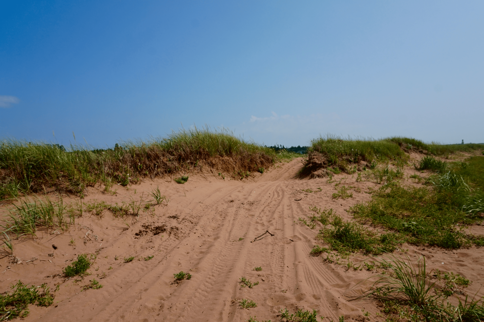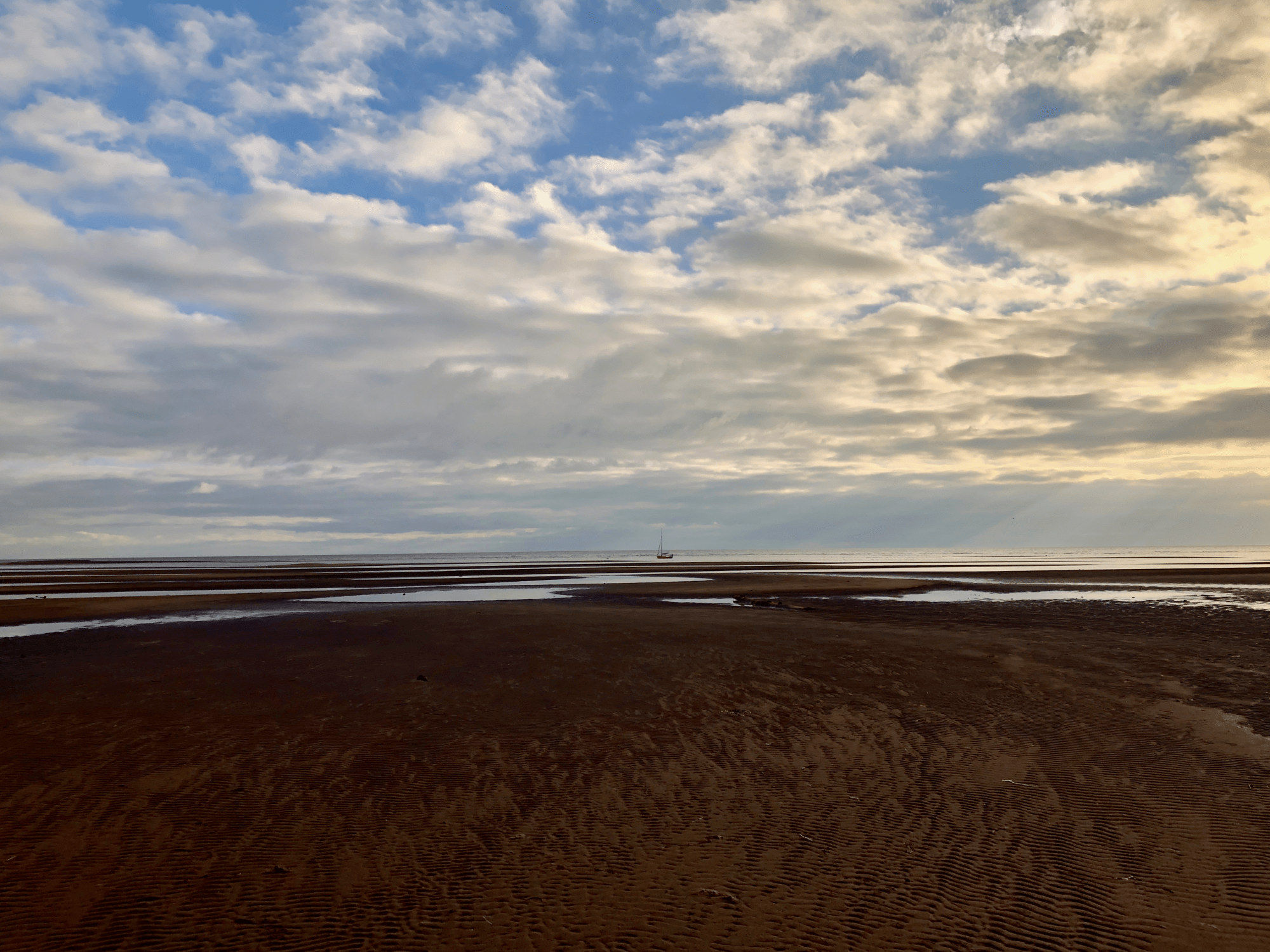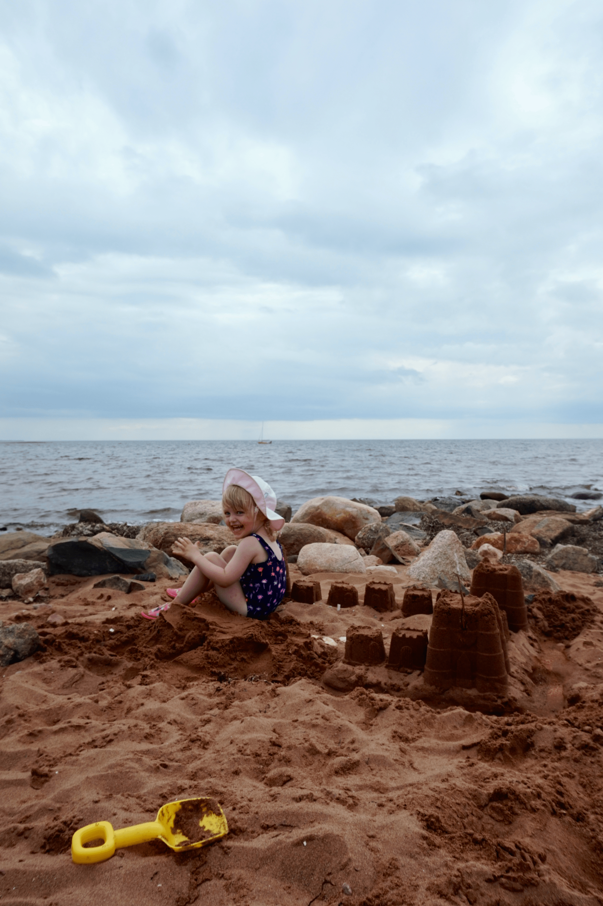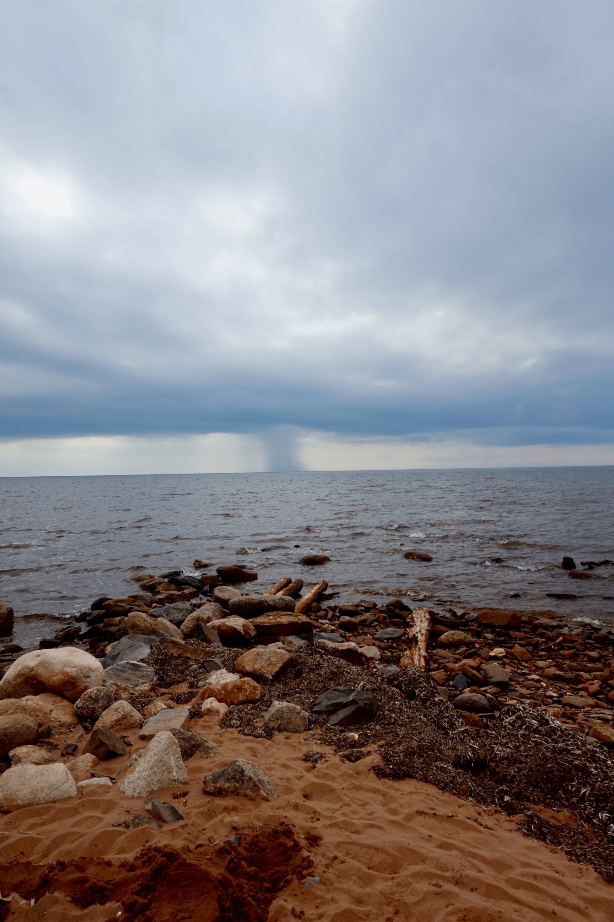 A favourite piece of shoreline. squashing sand castles with your butt, the rain off the water, run to the car.