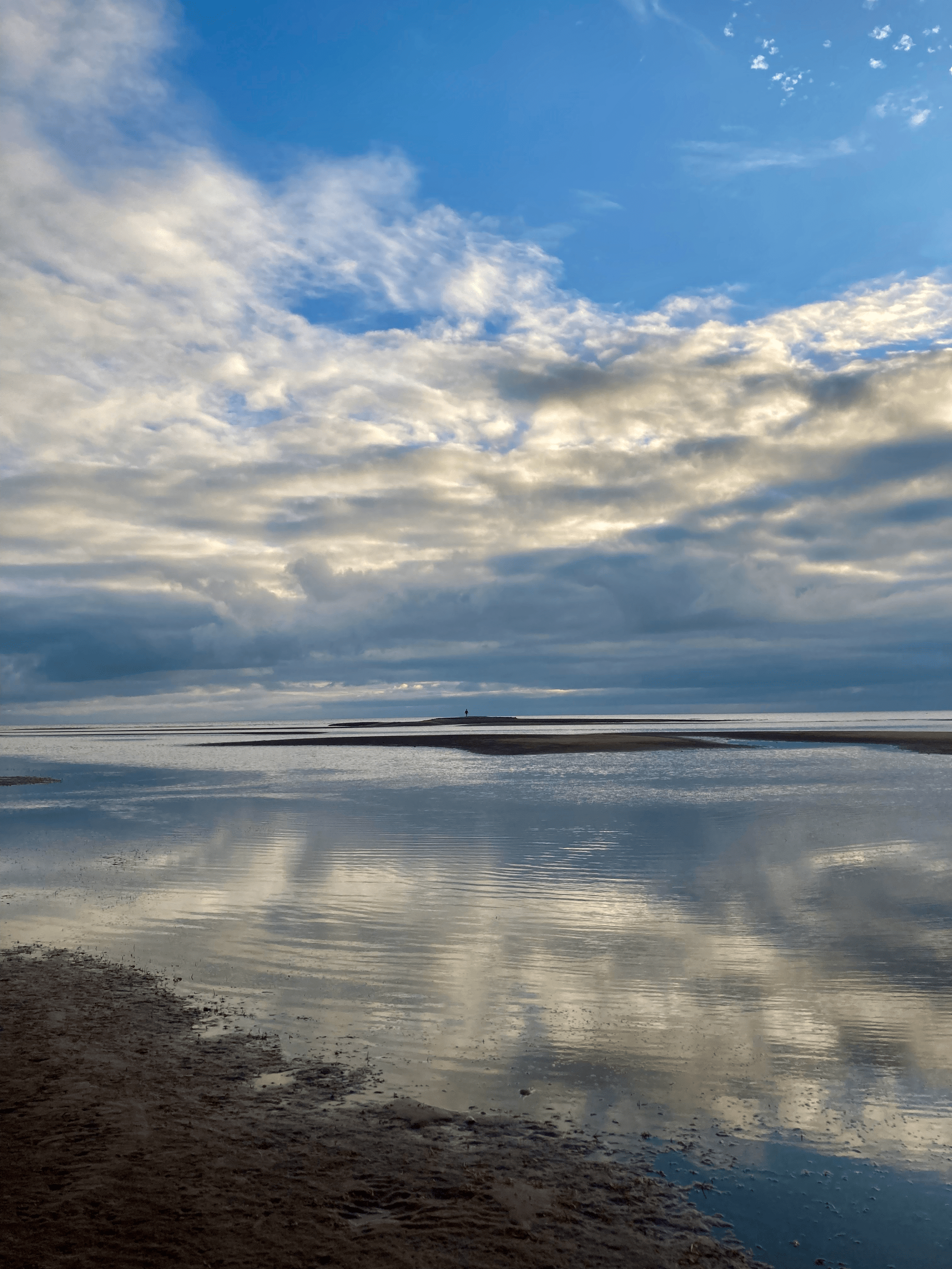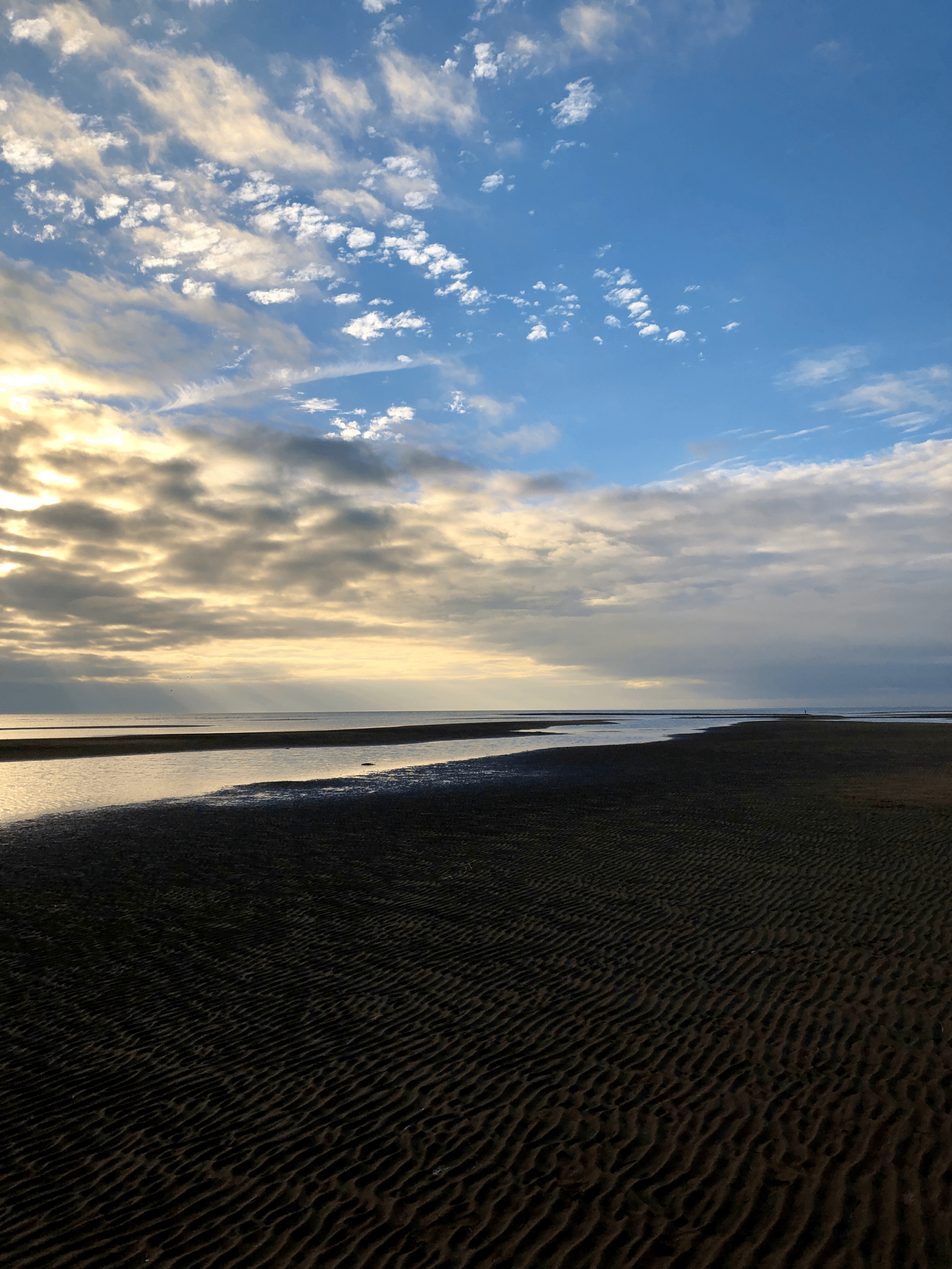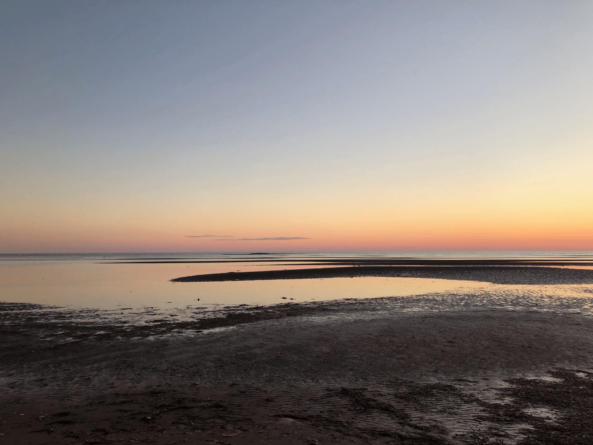 Checked the tidal chart. The car got stuck as I pulled up in the sand. Some nice people helped me get it out, and I asked before I made it worse trying to get it out on my own. The most beautiful sunset, watching the moon rise, the sound of water hitting the shore. A man pulls up behind me on an ATV, pulls out his cellphone and takes a photo, shouts “Aint that the fucking view! and drives away.