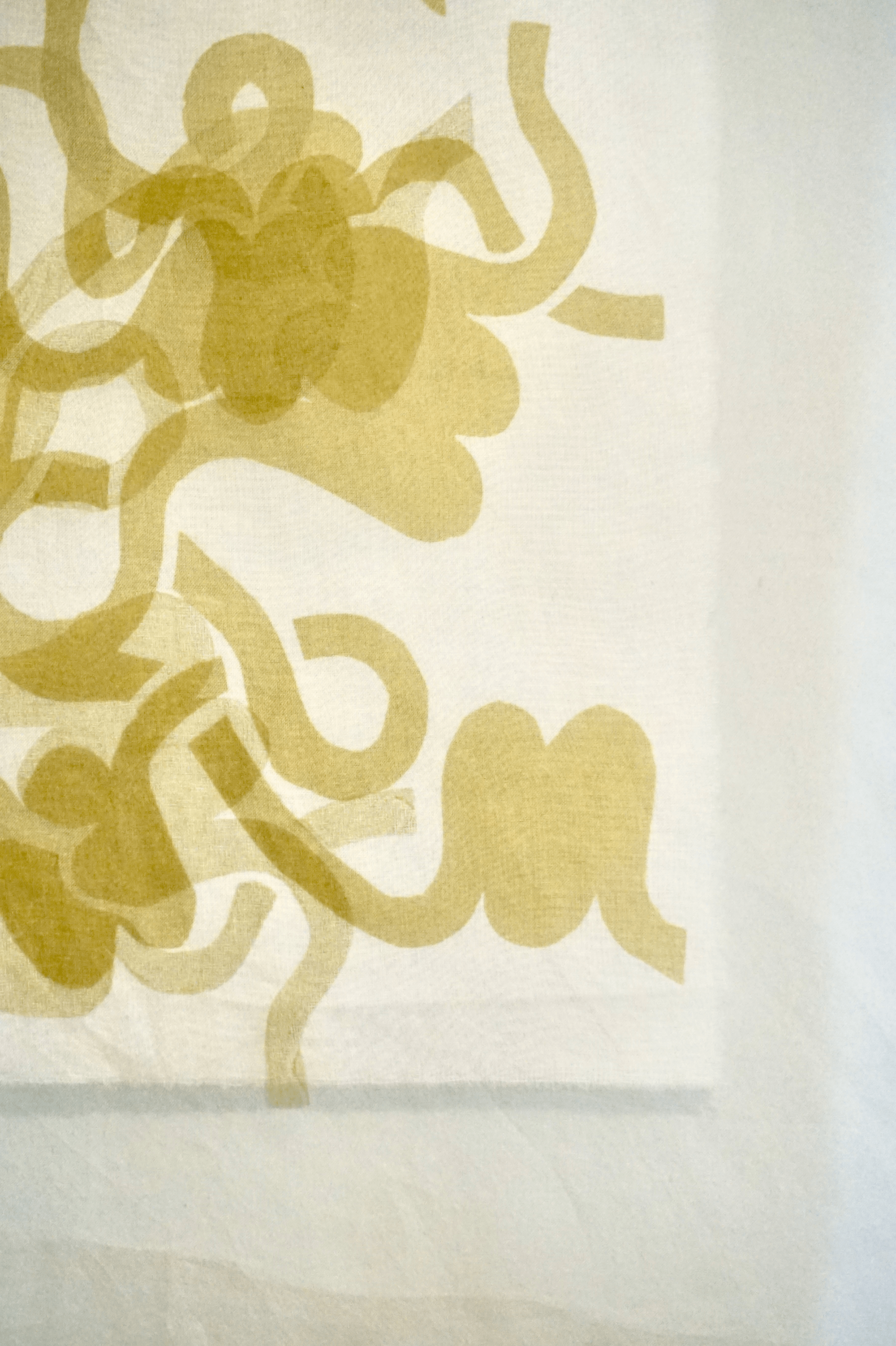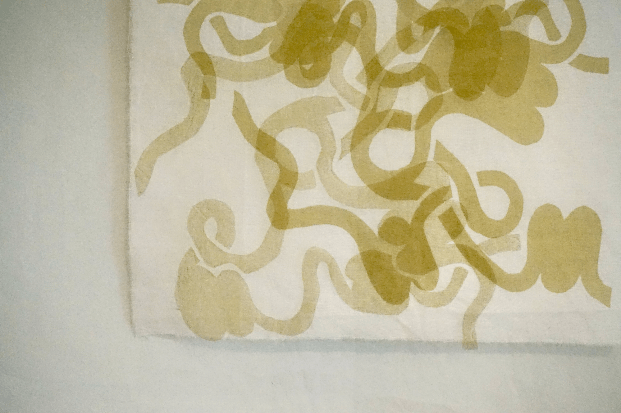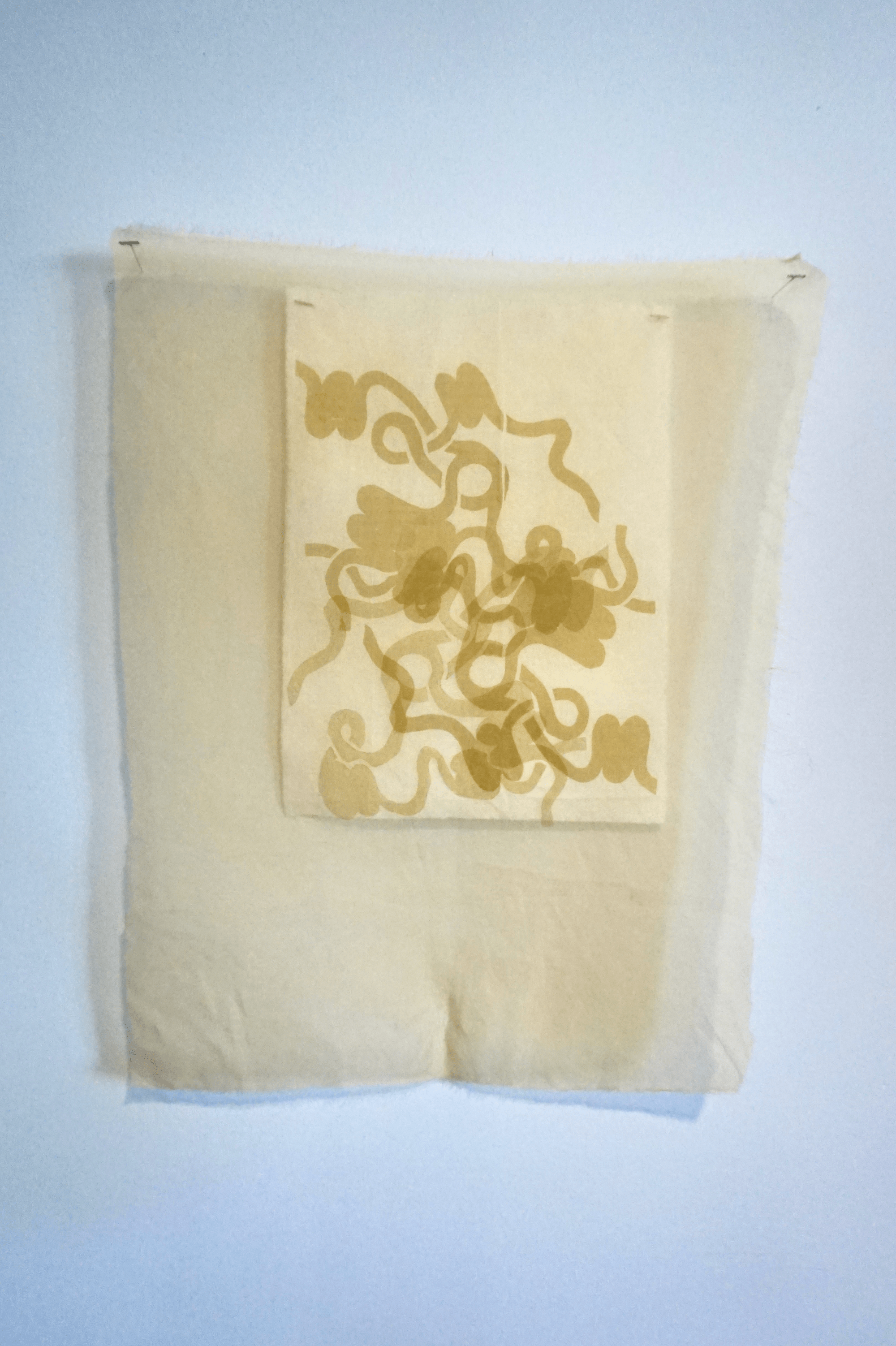Cotton, naturally dyed silk organza, rose pigment screenprint