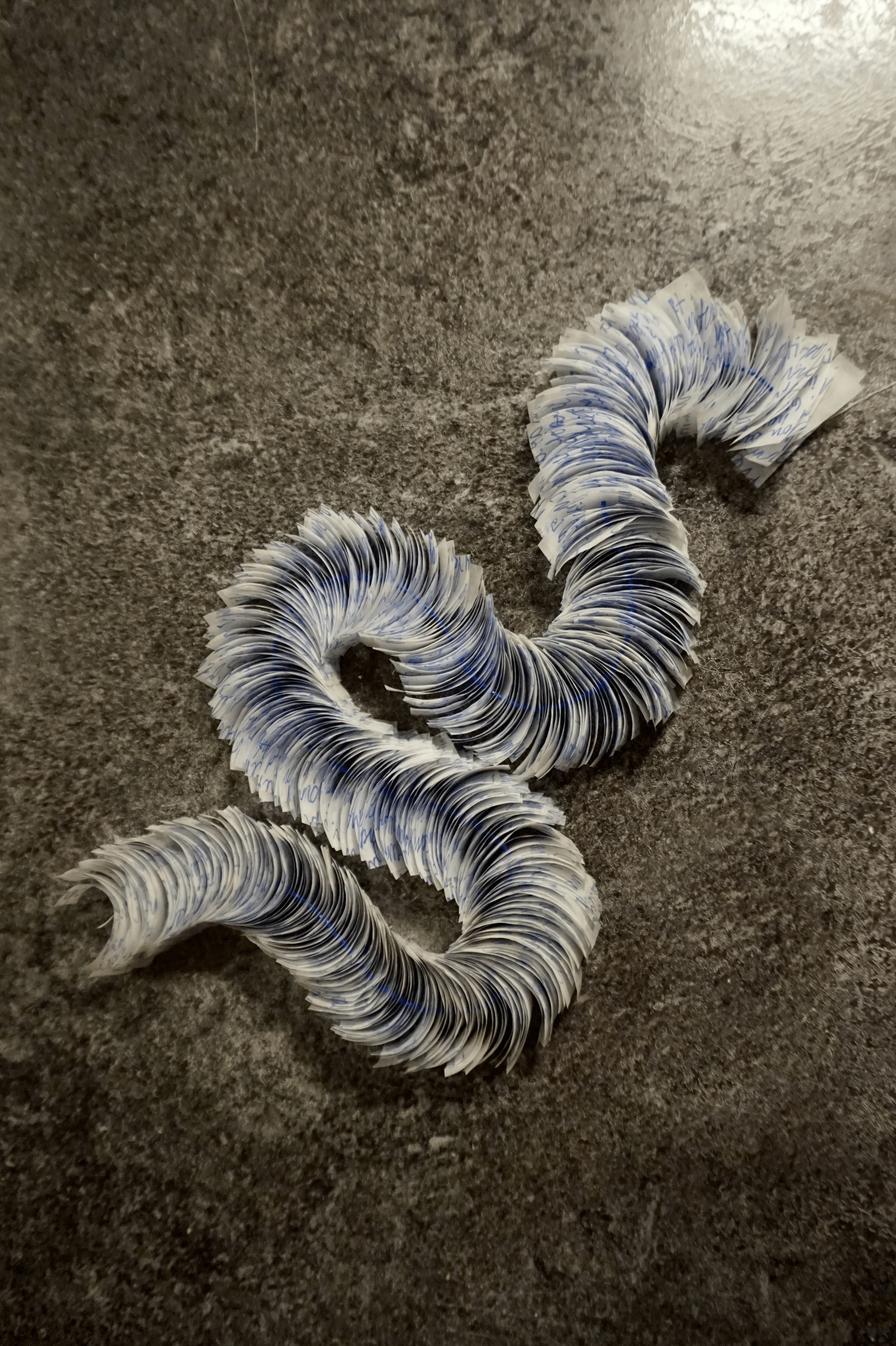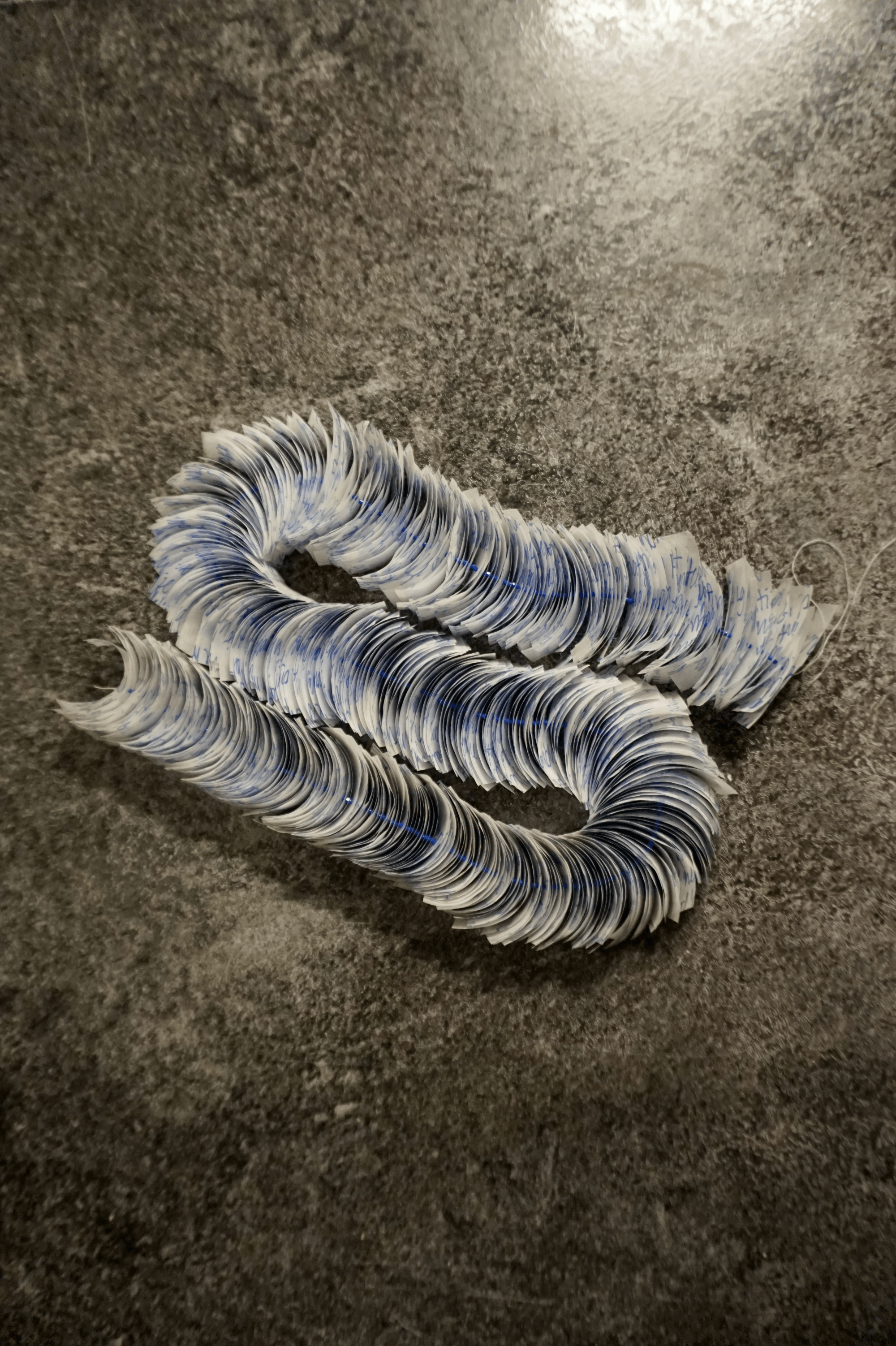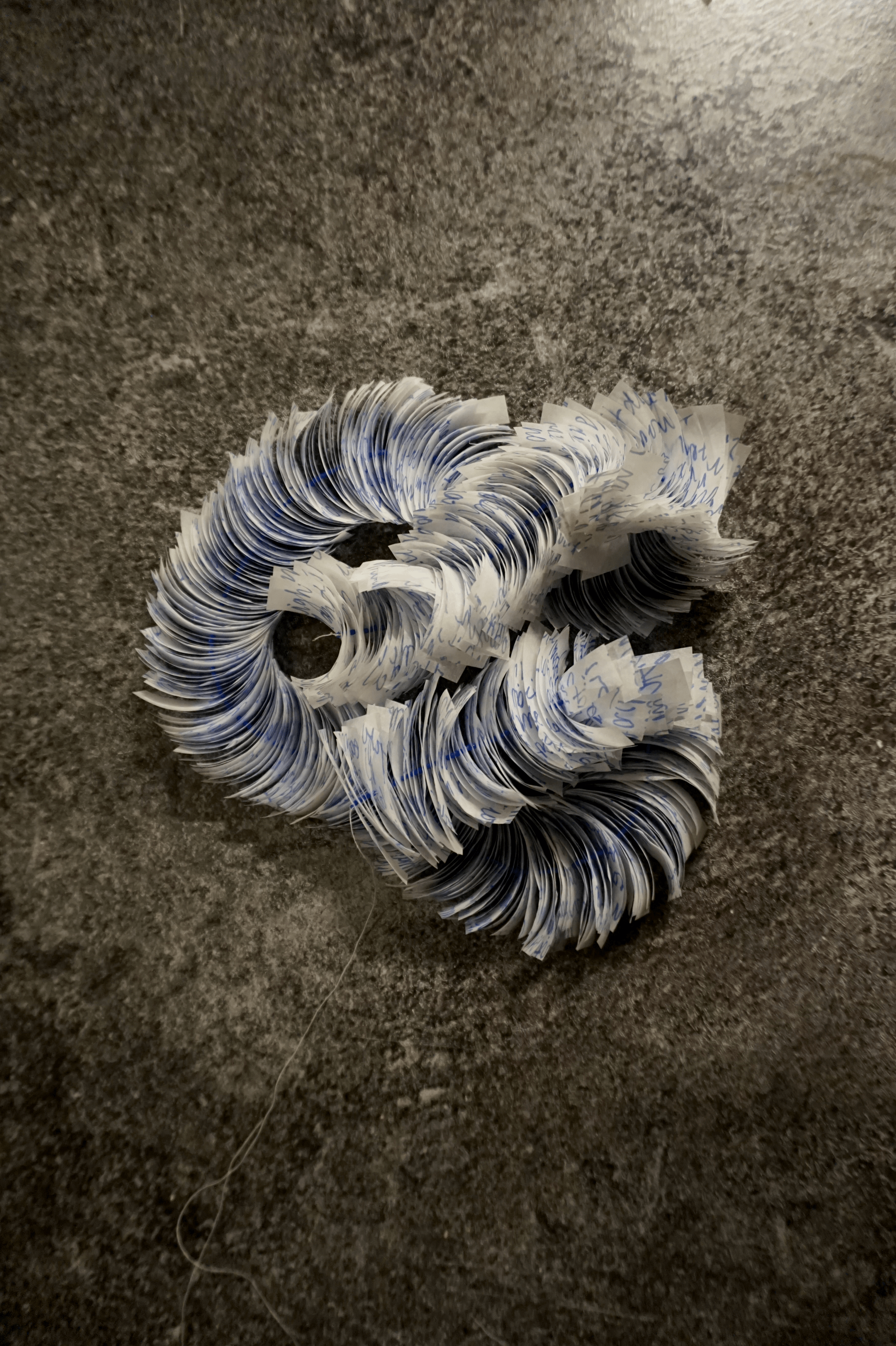 Vellum, felt tip pen, thread, glass beads