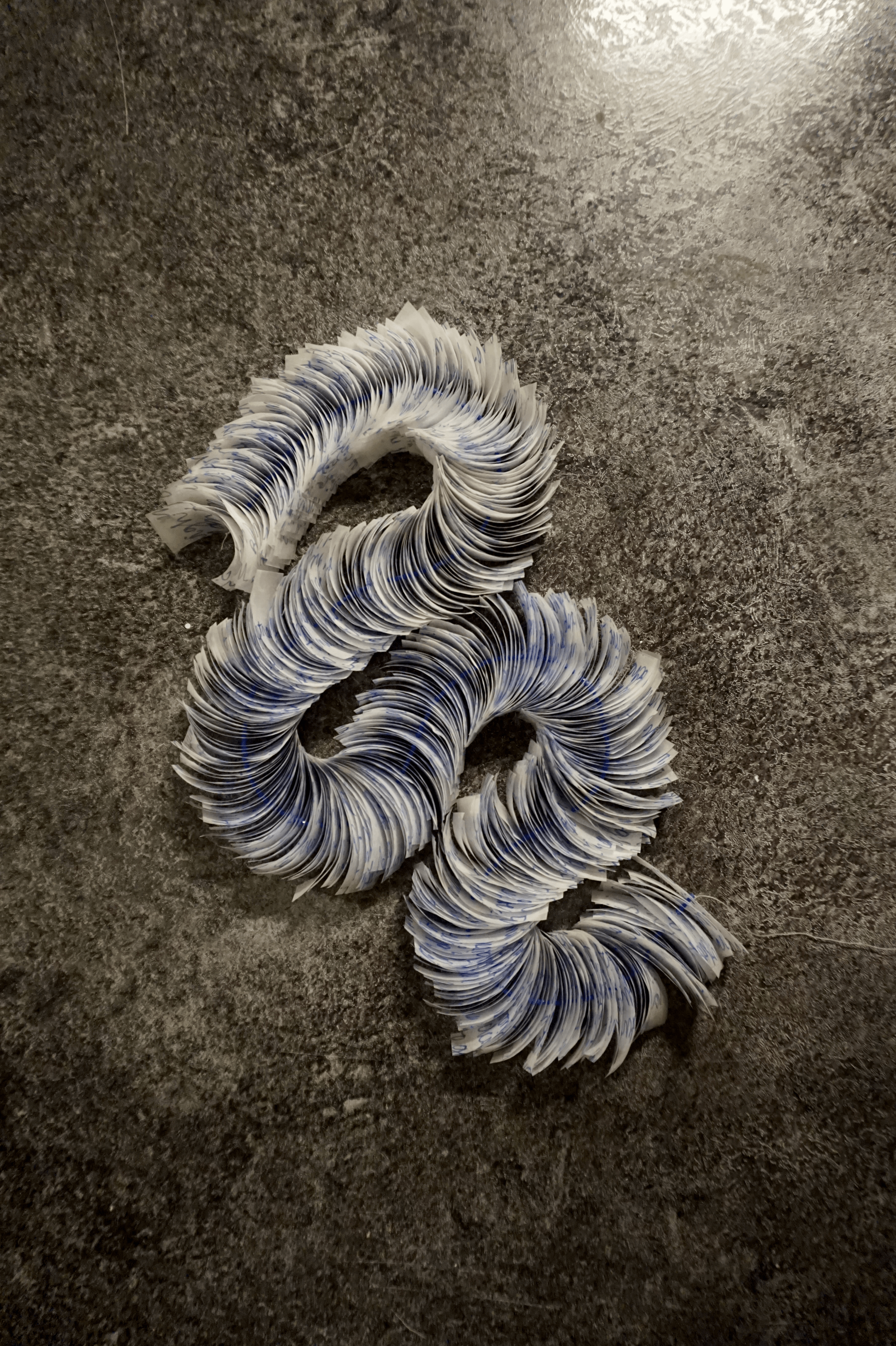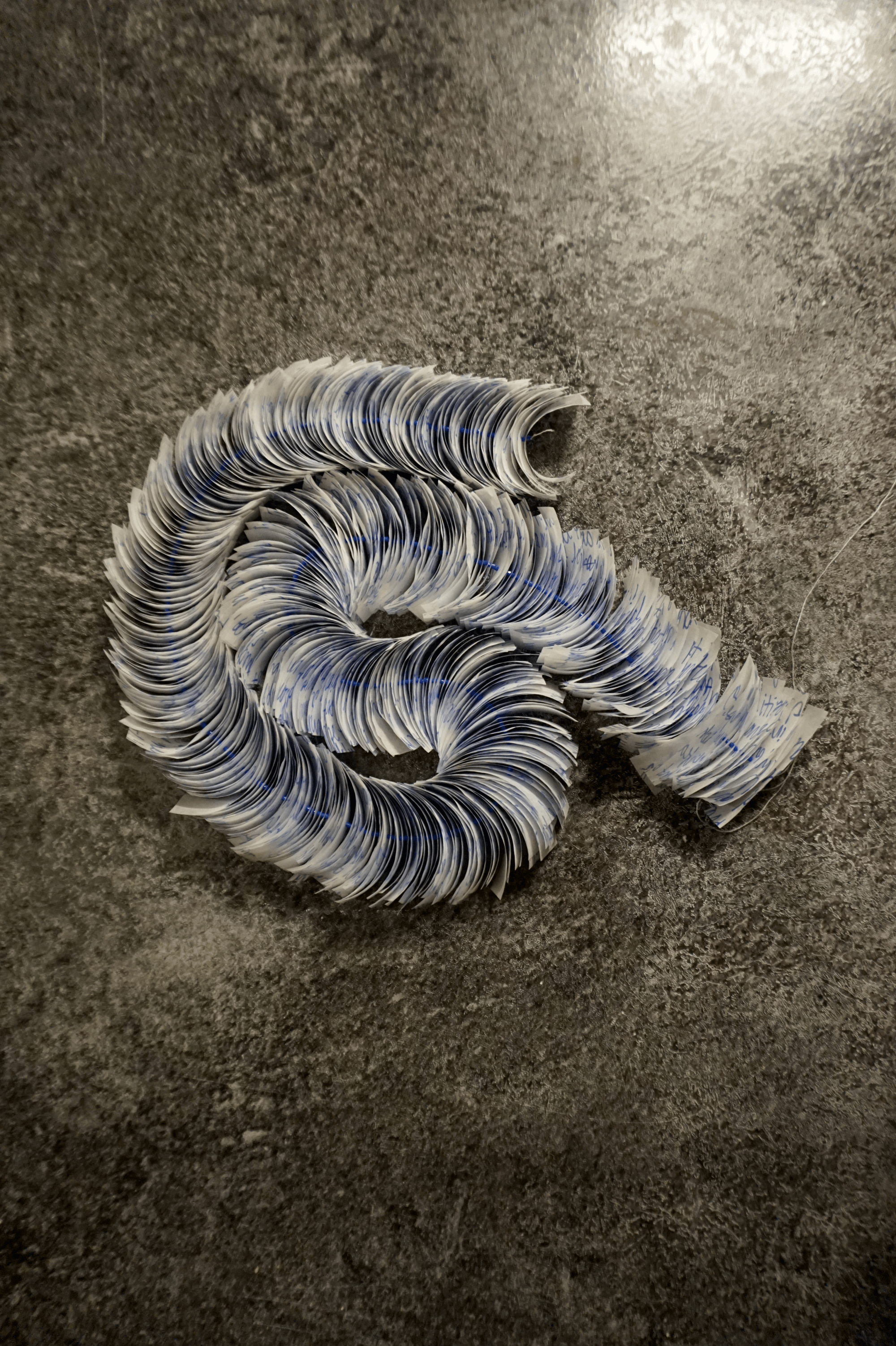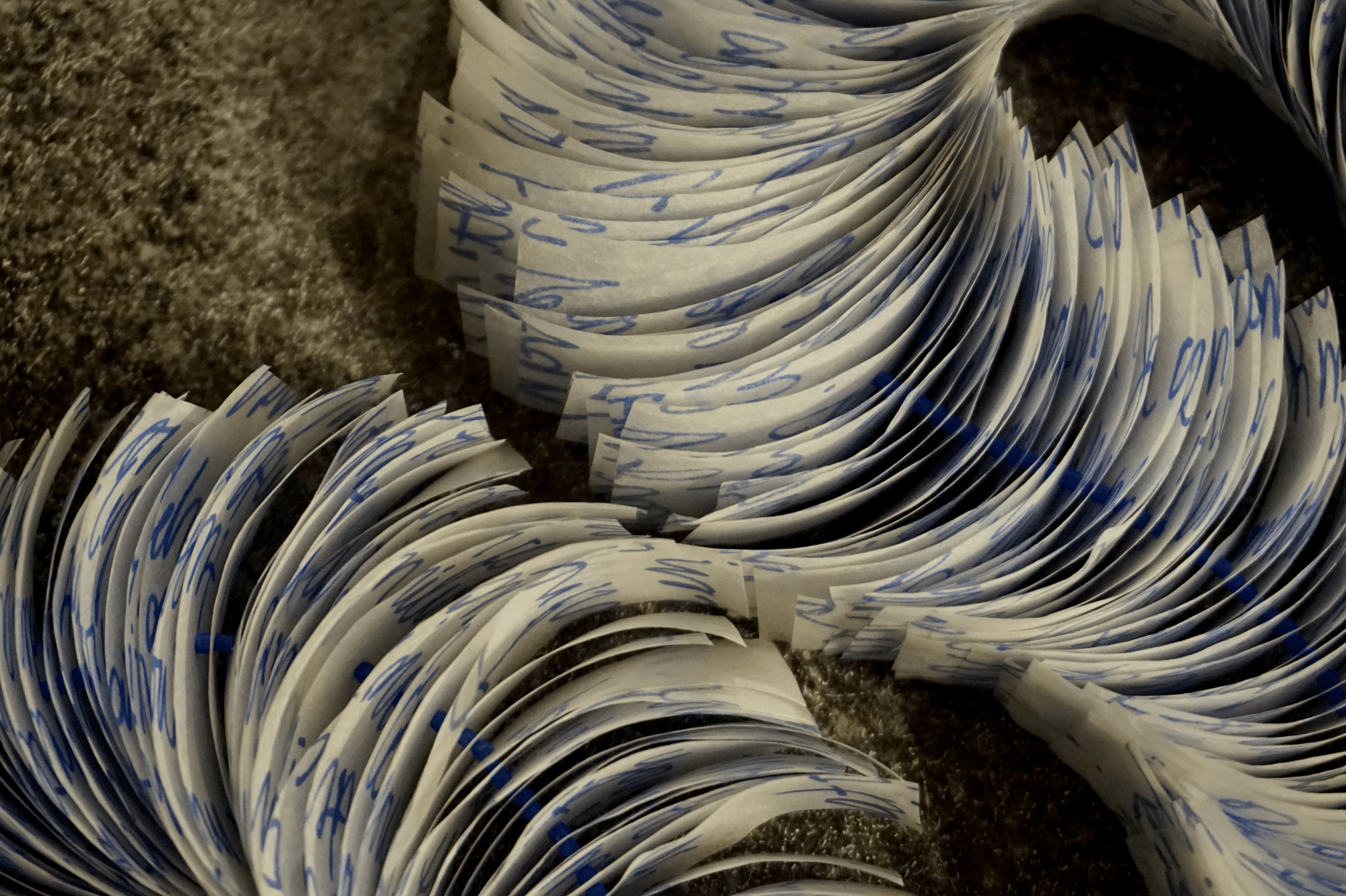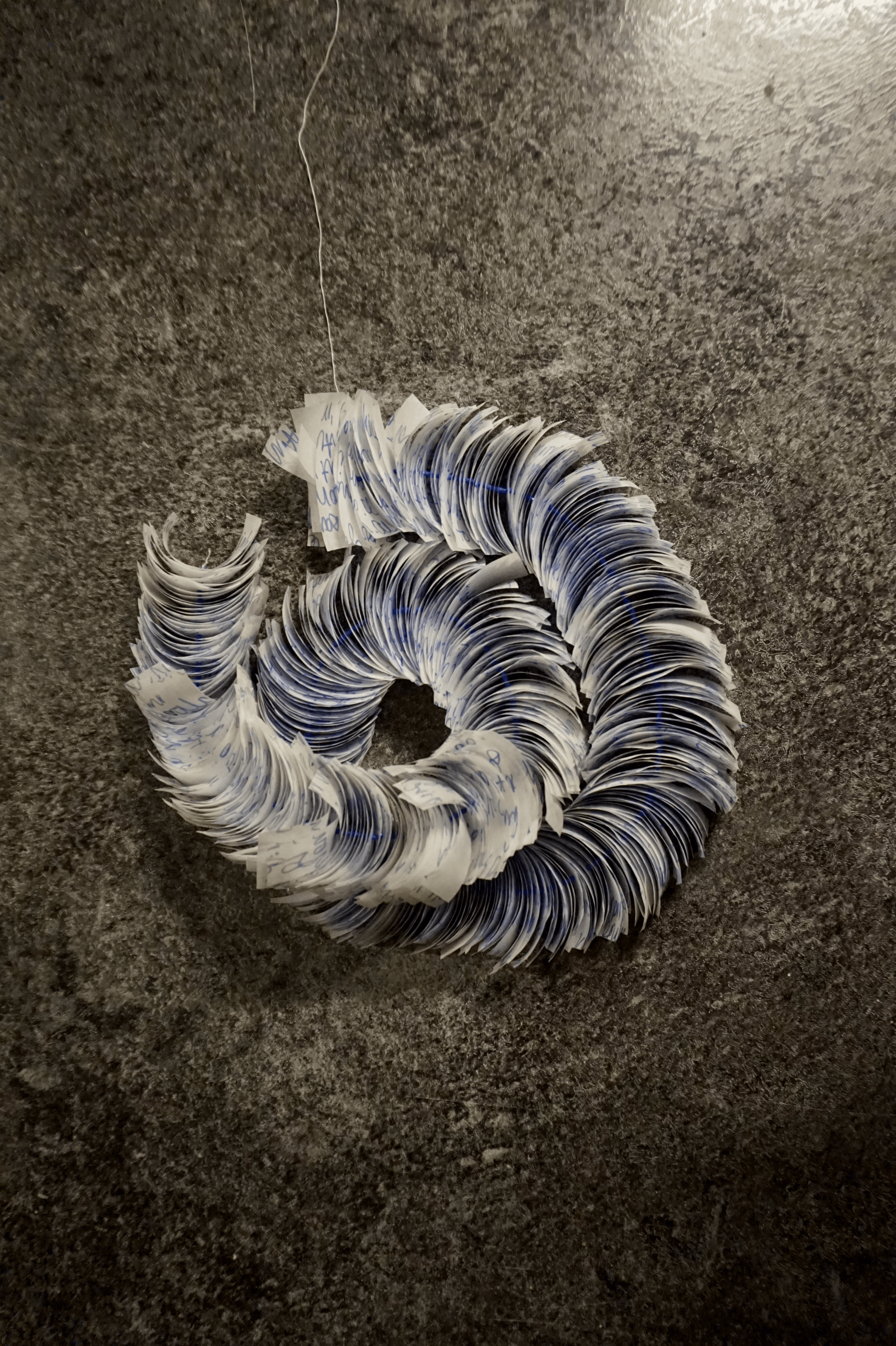 Vellum, felt tip pen, thread, glass beads