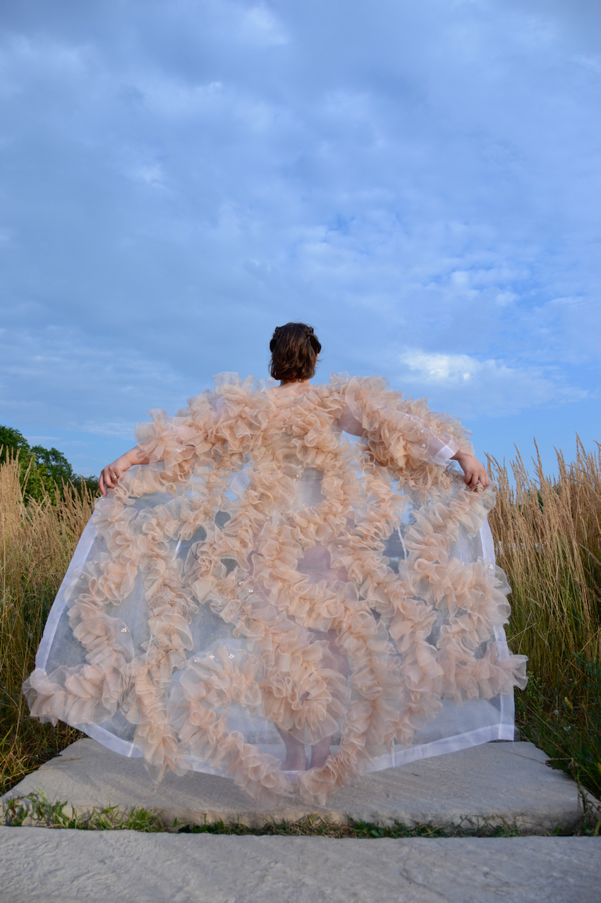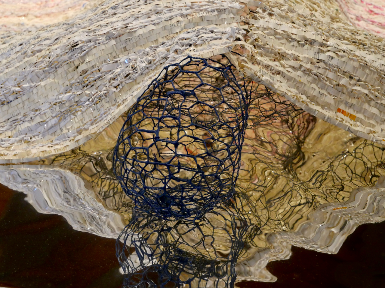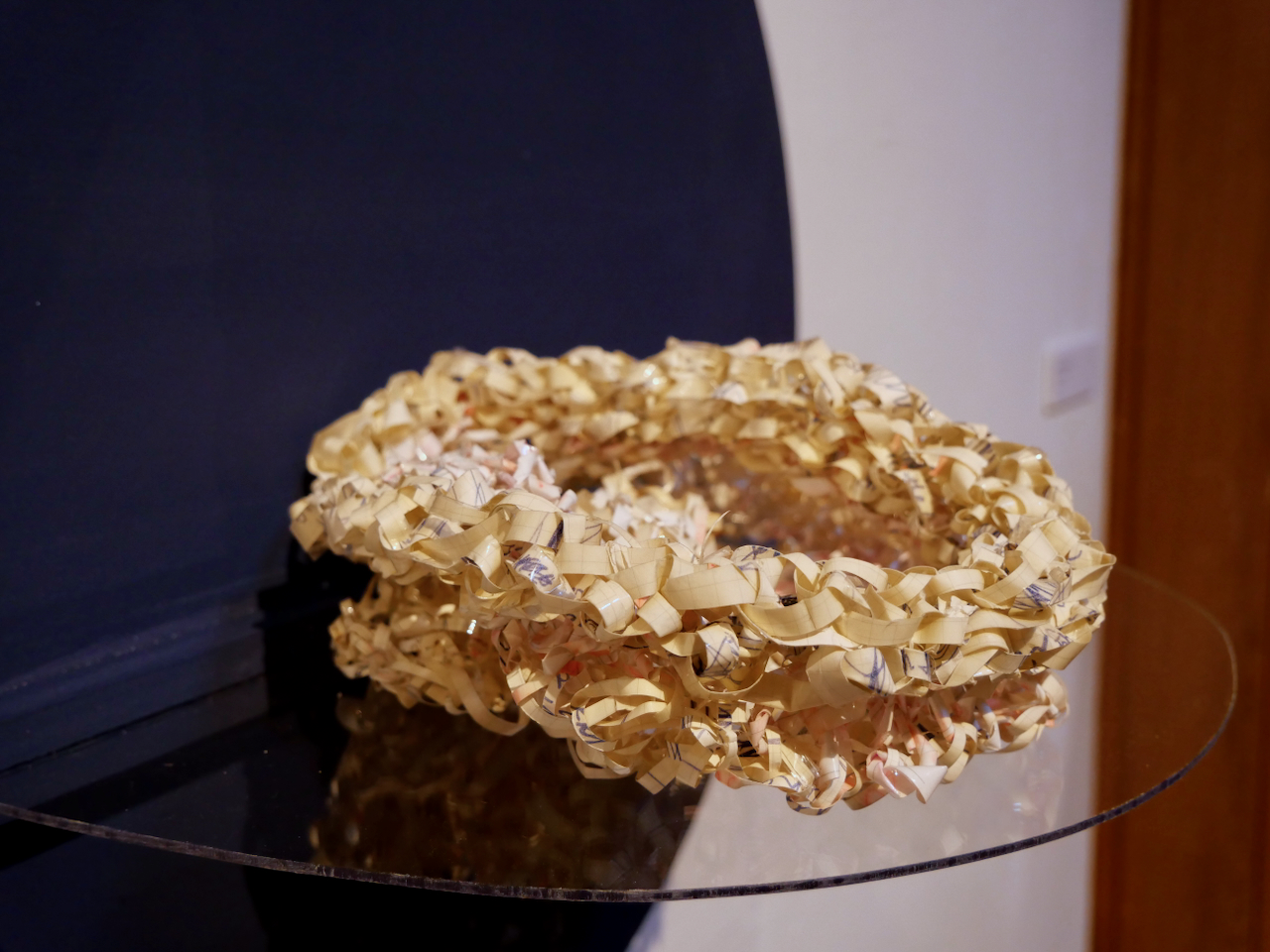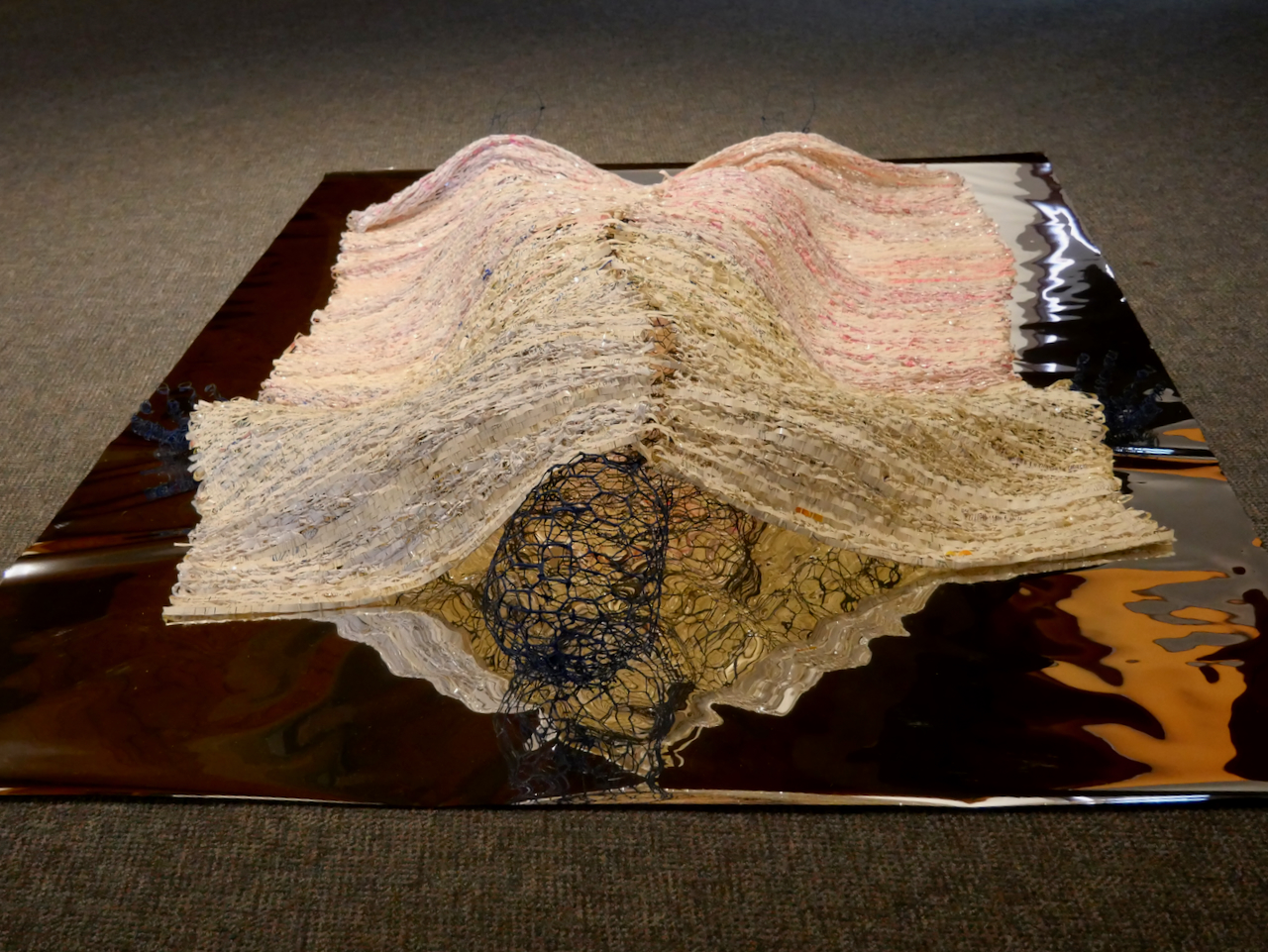 As an act of therapeutic release, I have been journaling and hand-lettering script since childhood, giving physical form to my thoughts and feelings. In Paper Letters, I deconstruct, disfigure, and distort these “sloppy” stream of consciousness writings – old journals, hand-lettered transcriptions of emails and instant messages, and letters written but never sent. The material’s transformation from something smooth, rigid, flat, and fixed in dimension into something irregular, flexible, and three-dimensional parallels the shifting of my stories. Through the repetitive processes of cutting, folding, stitching, and pleating, I transform the original text to the point of redirecting its power; stringing together the remnants to create something new.